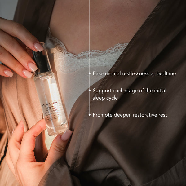 Our Restful Sleep Pillow Mist is a unique blend of soothing essential oils scientifically formulated to support each stage of your initial sleep cycle. Sweet bergamot helps to relax your body and elevate your moot, inviting amyris works to calm your mind and ease stress, while cool high-altitude lavender promotes a deeper, longer sleep, so you awake feeling refreshed and restored.
