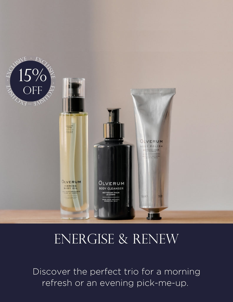 Start every day with energy and confidence using our Energise and Renew Set. Featuring our Body Polish, Body Cleanser, and Firming Body Oil, this set rejuvenates tired skin, smooths imperfections, and leaves you feeling refreshed from head to toe.