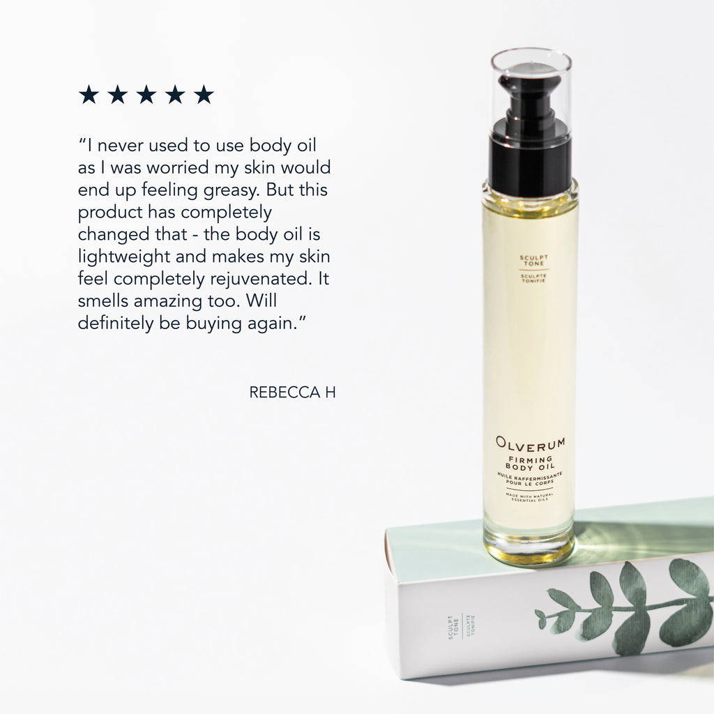 With a non-greasy texture and lightly energising fragrance, OLVERUM Firming Body Oil leaves skin visibly firmer and contoured.