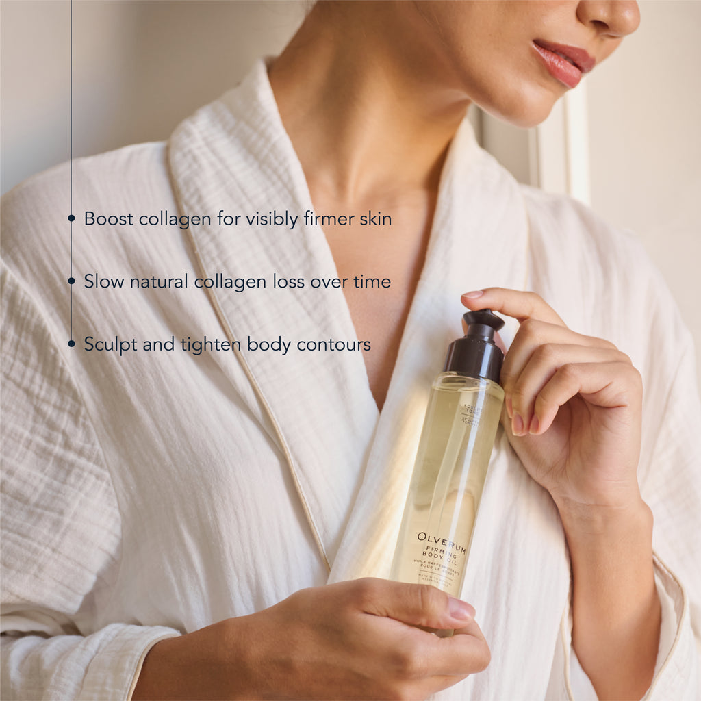A unique dual-action, body-contouring treatment oil, boosting collagen synthesis, while simultaneously slowing natural collagen loss, to leave skin visibly firmer and tighter.