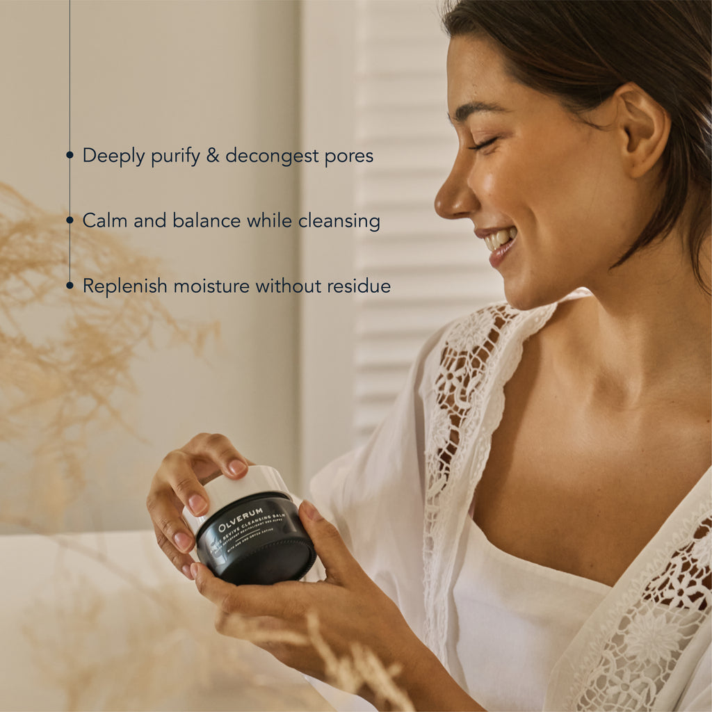 Massage onto dry skin, allowing the balm to dissolve makeup and impurities. Add warm water to emulsify into a silky milk, then rinse thoroughly or remove with a damp cloth for an indulgent, residue-free finish.