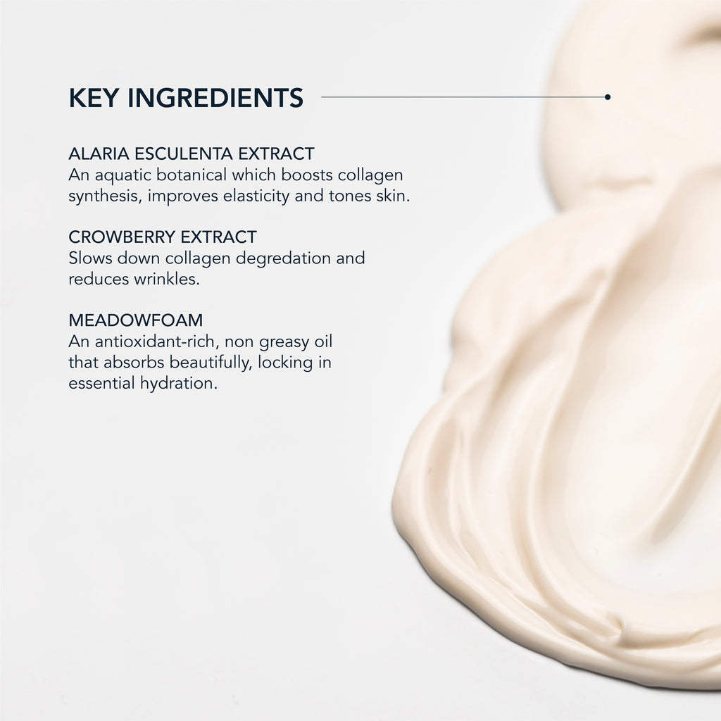 A daily use, dual-action body firming cream targeting loss of elasticity by boosting skin's collagen and hyaluronic acid production while slowing collagen loss, for a more toned and tightened appearance.